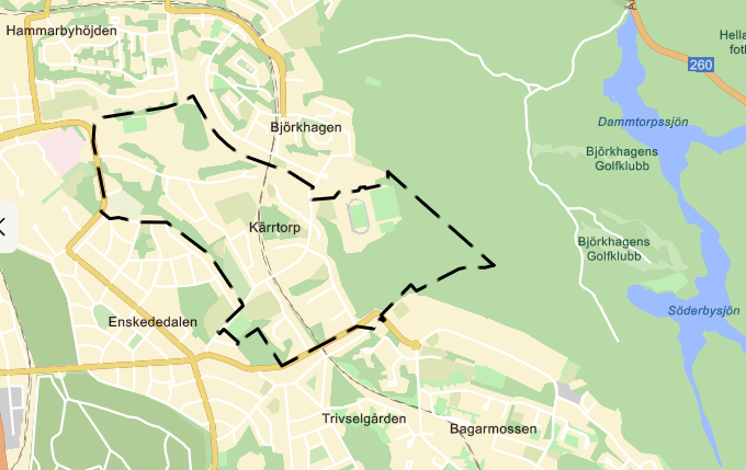 Kärrtorp tillhör Skarpnäcks stadsdelsområde. Namnet härrör från torpet Kärrtorp mittemot Skarpnäcks skola. Inflyttning till området började 1949. Stadsdelen har vuxit allteftersom. Det finns ett centrum med T-bana och buss. Med butiker *. Och en idrottsplats *. [Andra företag?]